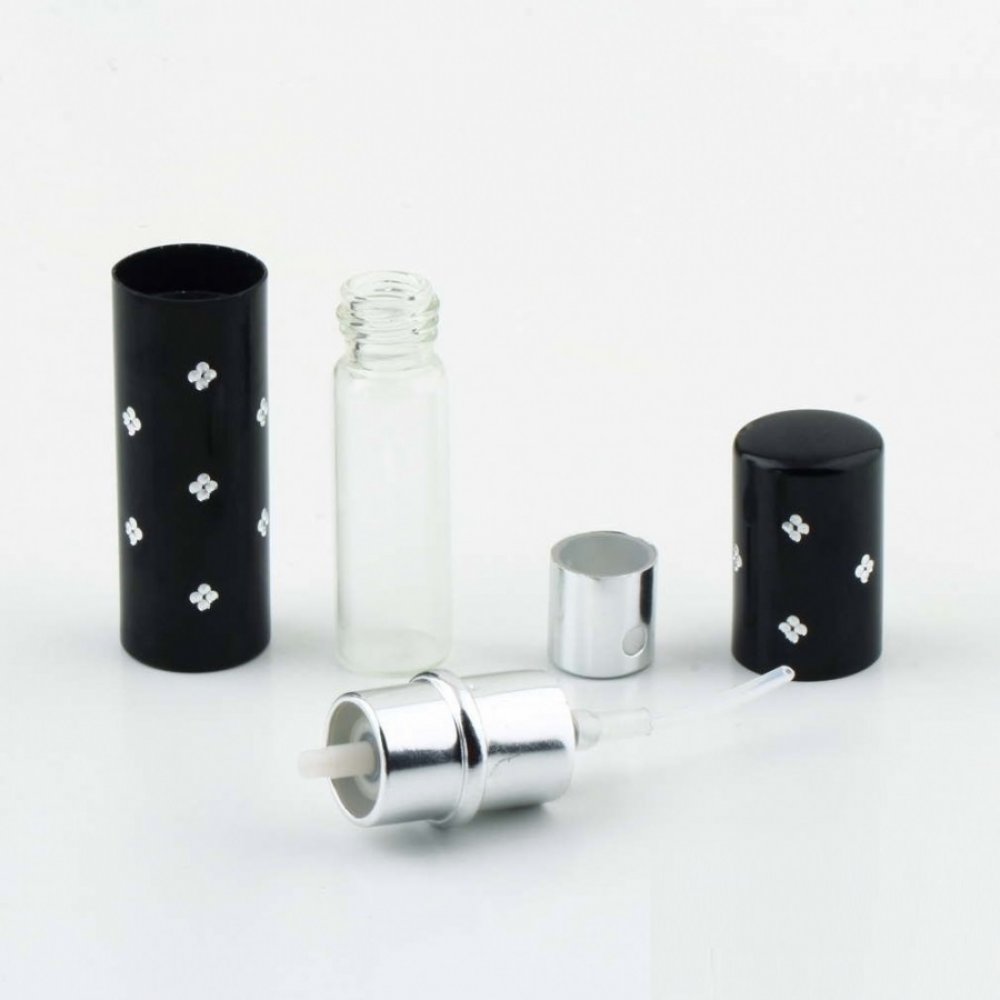 • Малък ръчен пулверизатор, стъклено шишенце в луксозен цилиндър.