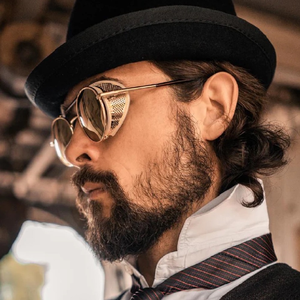 - Пънк очила със странични метални мрежести капаци арт дизайн стъкла.